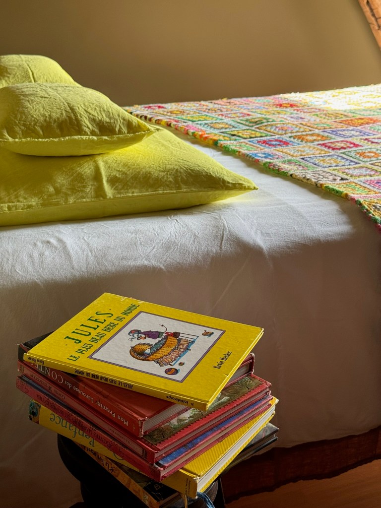 Quatre lits simples (90×200) pour les enfants, les amis ou les cousins. Un espace joyeux et lumineux.