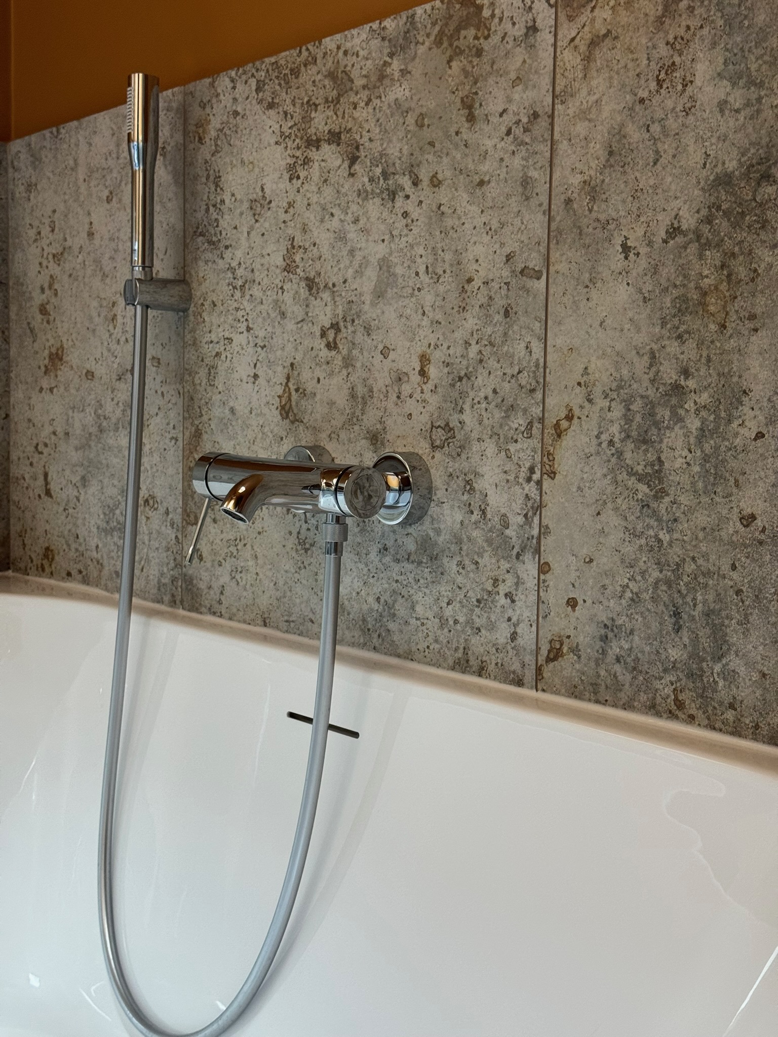 Les produits de toilette vous attendent dans les douches et la baignoire, et un sèche-cheveux est à disposition.